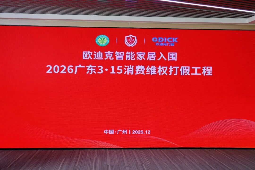 门窗行业首家!欧迪克入围“2026广东3·15消费维权打假工程”共建单位。